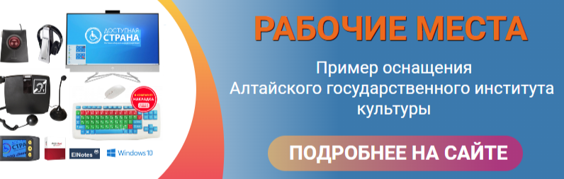 Один из недавних наших проектов - адаптация компьютерного рабочего места для людей с инвалидностью различных нозологий в Алтайском Государственном Институте Культуры.
