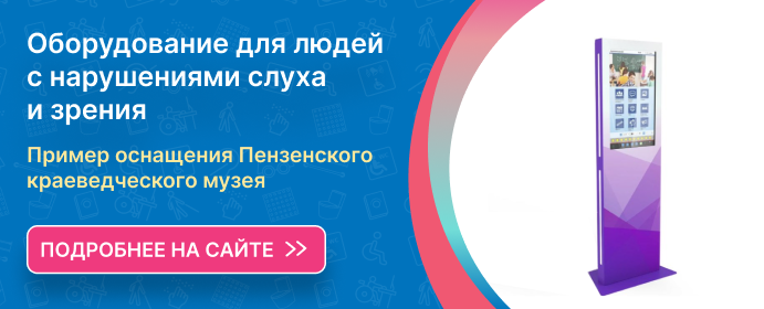 Наш недавний реализованный проект - оснащение Пензенского краеведческого музея специализированным оборудованием для проведения экскурсий для слабослышащей и слабовидящей аудитории.