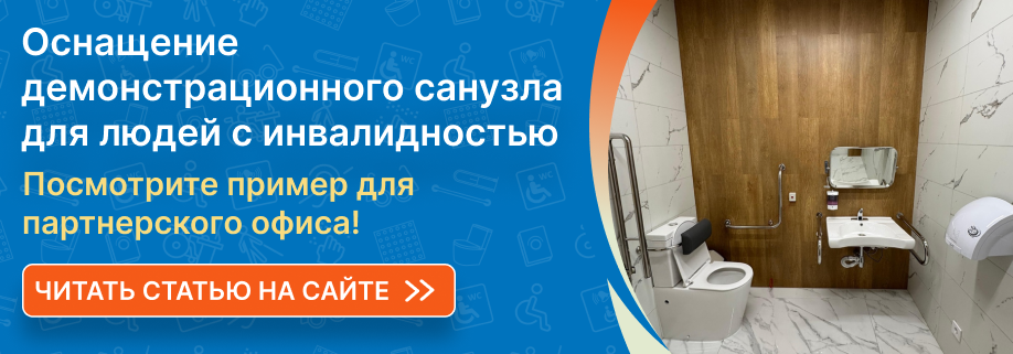 | Компания «Доступная страна» - ведущий производитель и поставщик оборудования для людей с инвалидностью. Мы рады поделиться с вами нашим новым проектом по оснащению демонстрационного санузла для нашего партнёрского офиса.