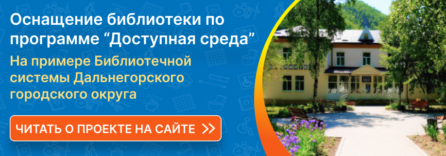 | Компания «Доступная страна» - ведущий производитель и поставщик оборудования для создания доступной среды. Мы приглашаем вас ознакомиться с успешным проектом по созданию доступной среды в библиотечной системе Дальнегорского городского округа Приморского края.