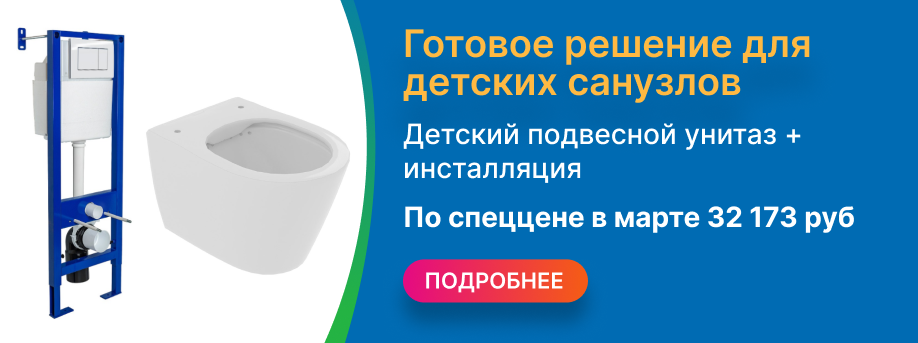Спецпредложение на комплект оборудования! К детскому унитазу подходит инсталляция с кнопкой смыва. При покупке комплекта унитаза вместе с инсталляцией вы получаете дополнительную скидку. Акция действует до конца марта.