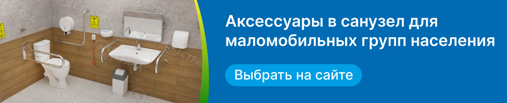 Компания "Доступная страна" - лидер в области создания доступной среды. Мы подготовили подборку аксессуаров для санитарных узлов МГН. Оборудование полностью соответствует действующим требованиям ГОСТ и СП.