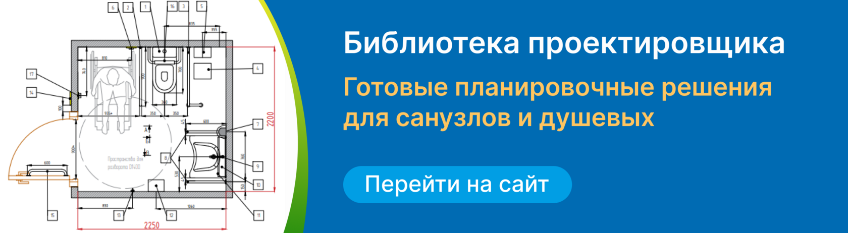 На сайте мы собрали подробные готовые планировочные решения для санузлов и душевых: - проекты санузлов с напольным унитазом, - решения с подвесным унитазом, - адаптированные душевые, - санитарные зоны, совмещённые с комнатой матери и ребёнка.
