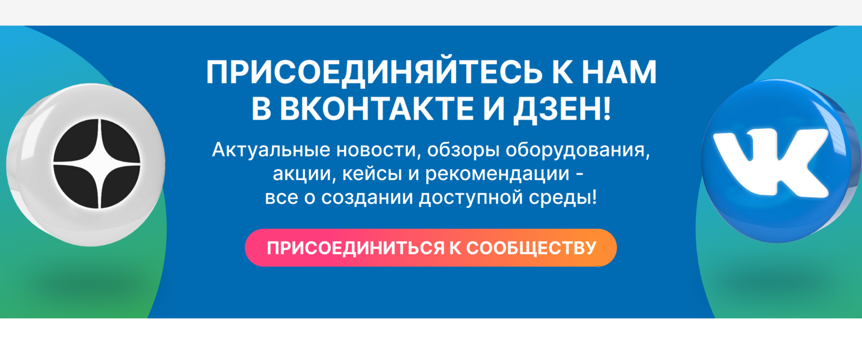 | В наших группах мы делимся практическими материалами, которые помогут при работе с вашими клиентами: | | | | | | | Каждый проект для нас - это не просто выполнение заказа, но и вклад в создание доступной среды для людей с инвалидностью. Вы узнаете, как мы помогали адаптировать различные учреждения по всей России. | | | Рекомендации по выбору оборудования | | Рассказываем, как правильно подобрать решения, соответствующие СП, ГОСТ и задачам конкретного учреждения. | | | Изменения в нормативной базе | | Отслеживаем новшества и делимся актуальными трактовками, чтобы вы были уверены в каждом решении. | | | | | | Все важные новости о нашей деятельности, участие в выставках и форумах, новые достижения и анонсы продуктов - теперь в одном месте. | | | Обратная связь и консультации | | На нашей странице ВКонтакте вы можете задавать вопросы. Мы всегда рады помочь вам найти оптимальные решения для адаптации ваших учреждений. | | | | | Мы уверены, что эти материалы будут полезны в вашей работе - вы будете лучше понимать, какие решения предлагать вашим клиентам.