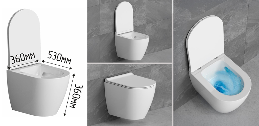 Характеристики: размер 50×37×37 см, выдерживает нагрузки до 400 кг, безободковый дизайн с технологией смыва «Торнадо», сиденье с микролифтом из дюропласта.