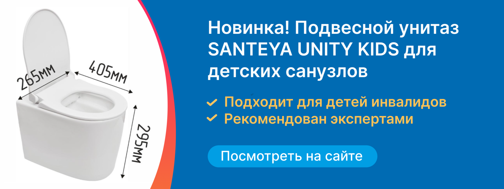 Компания "Доступная страна" представляет новинку - детский подвесной унитаз SANTEYA UNITY KIDS. Это современное решение создано для обустройства санузлов в детских учреждениях, школах, детских садах и объектах социальной инфраструктуры, включая адаптацию для детей с инвалидностью.