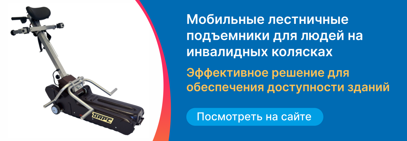 Компания «Доступная страна» более 12 лет оснащает учреждения оборудованием для МГН. Ознакомьтесь с подборкой самых востребованных лестничных подъемников! |
